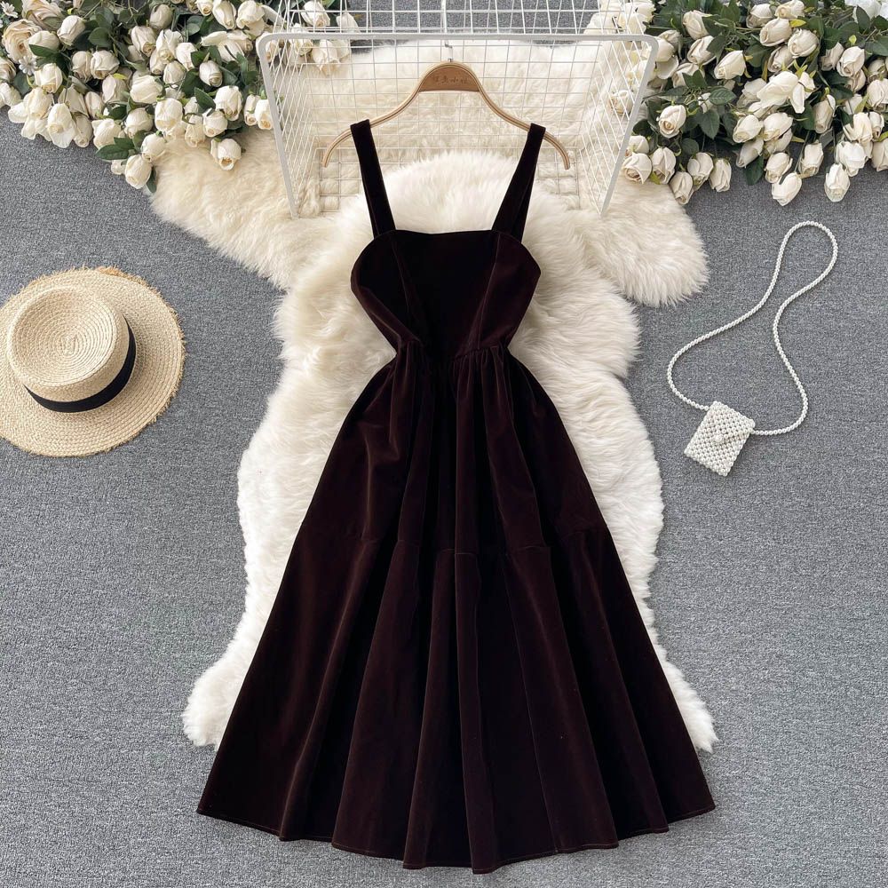 Vestido de terciopelo con tirantes y moño detrás