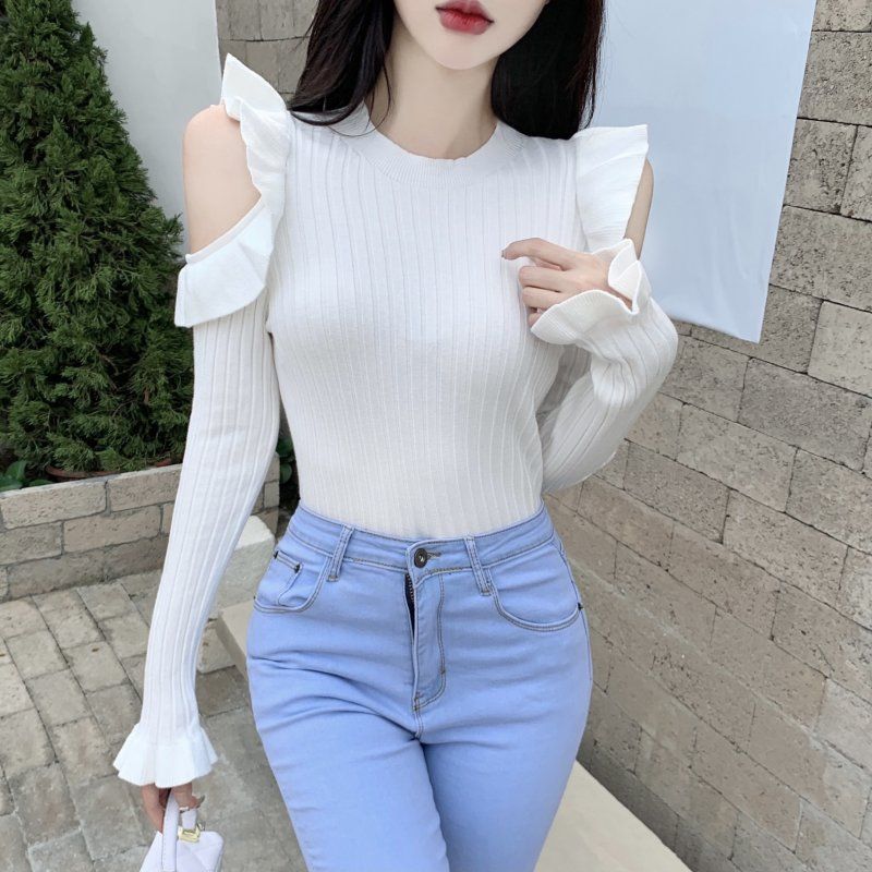 Color:Negro, Blanco, Rosa Talla: Unitalla Tipo: Jersey Longitud de la manga: manga larga Tipo de manga: Mangas de trompeta Tipo de cuello: cuello redondo Modelo: Ajustado Espesor: Convencional