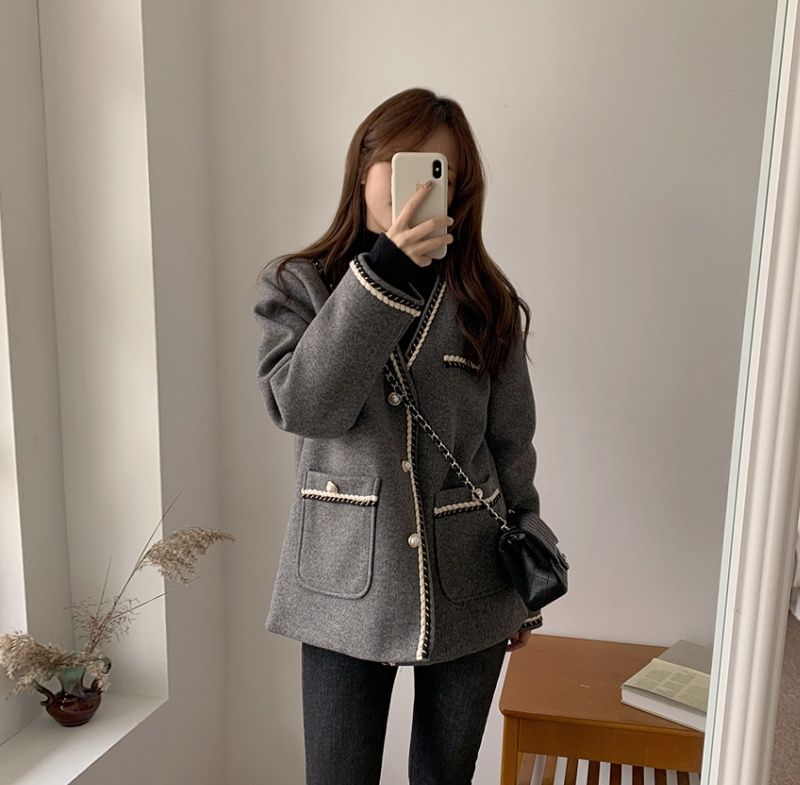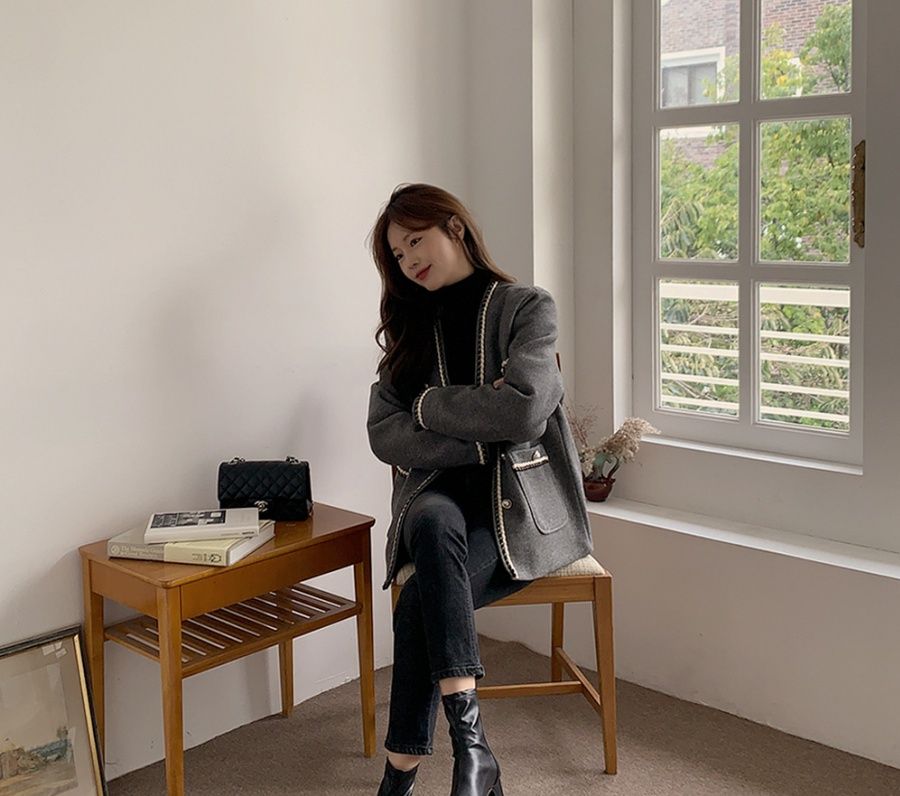 Color: GrisTalla: UnitallaEstilo: estilo coreano Longitud de la manga: manga larga Contenido de la tela: 30%-50%