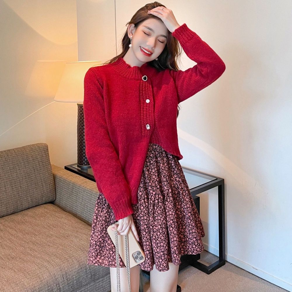 Conjunto de 2 piezas de vestido ajustado floral con abrigo