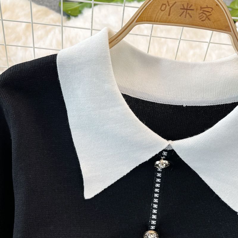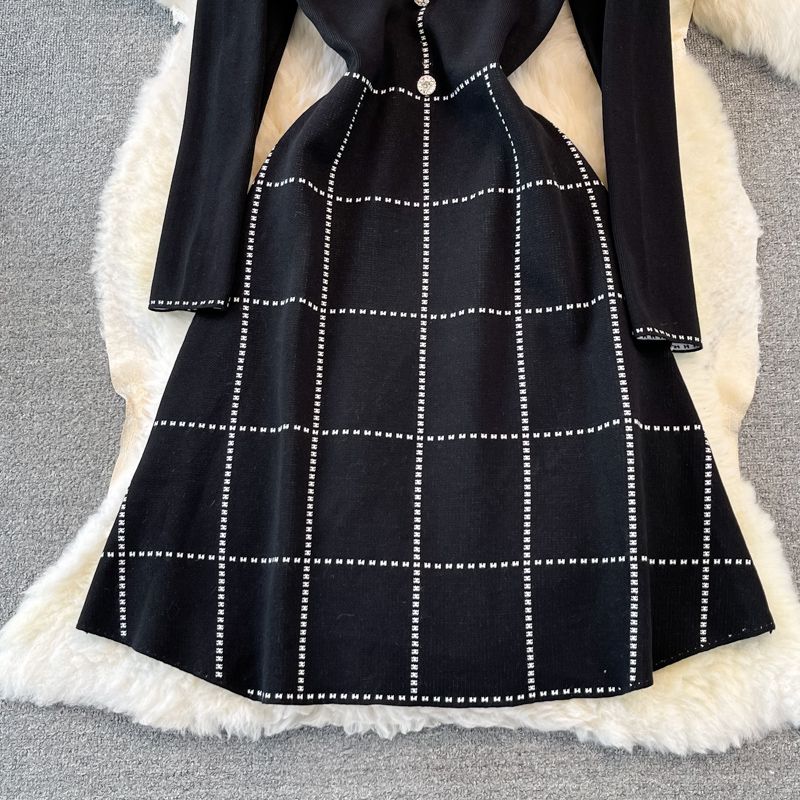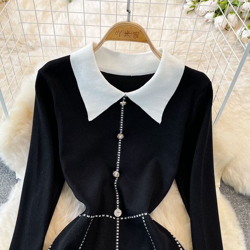 Color: NegroTalla: Unitalla Temporada: primavera y otoño Longitud: Vestido de longitud media Longitud de la manga: manga larga Tipo de manga: Manga abullonada Tipo de cuello: Cuello Polo Contorno: tipo A Tipo de cintura: cintura alta Tipo de falda: vestido de una línea