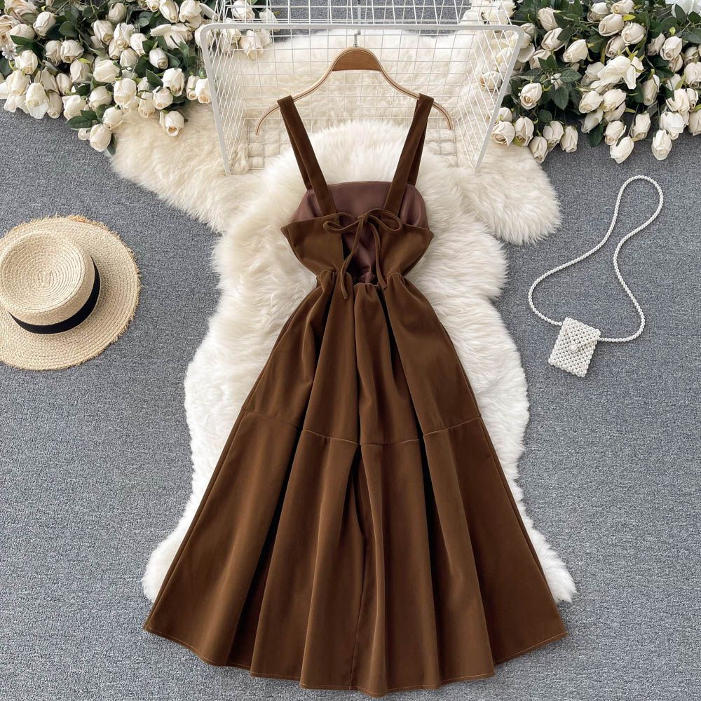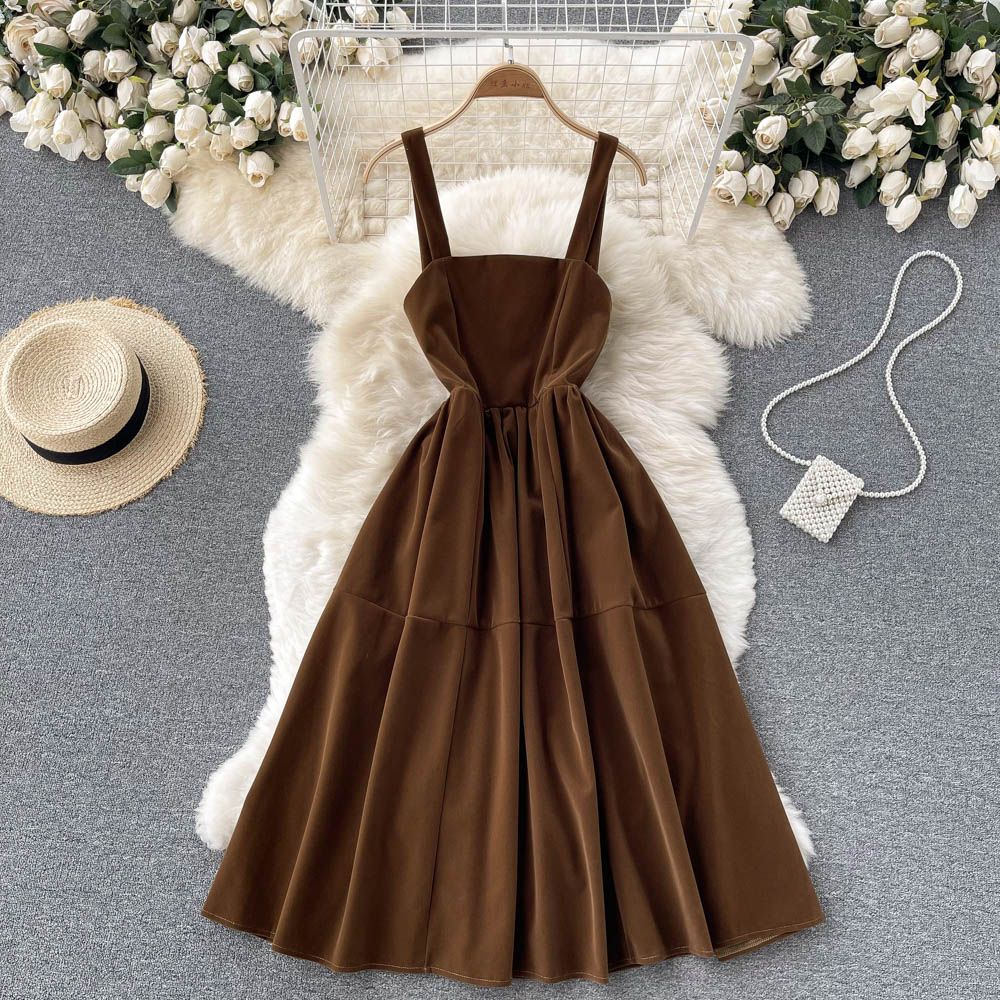 Color:Negro, Marrón Talla: Unitalla Estilo: estilo coreanoLongitud: Vestido largo Longitud de la manga: manga larga Contorno: tipo A Tipo de cintura: cintura alta Tipo de falda: vestido de una línea