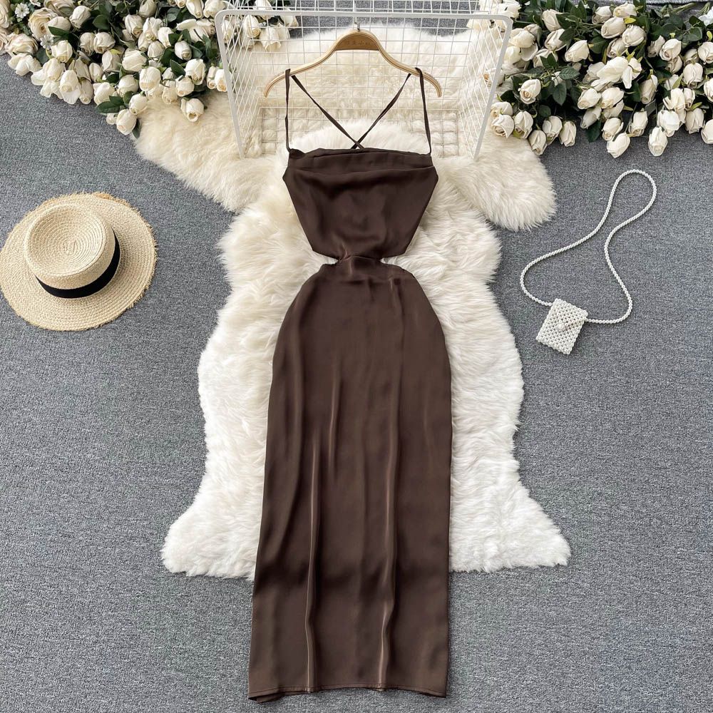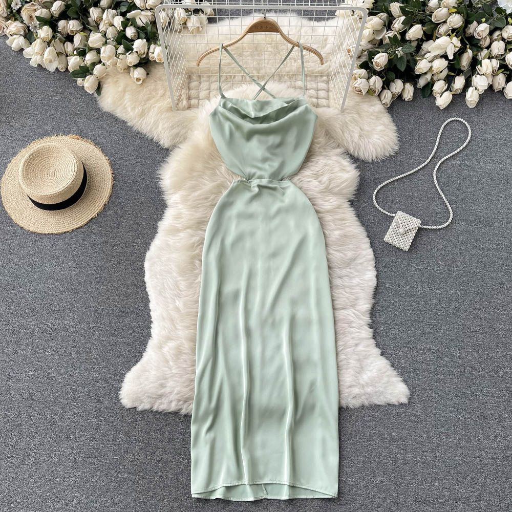 Talla: Unitalla Estilo: estilo coreano Temporada: primavera y otoño Forma: Conjunto de una pieza Longitud: Vestido largo Longitud de la manga: Sin mangasTipo de cuello: cuello redondo